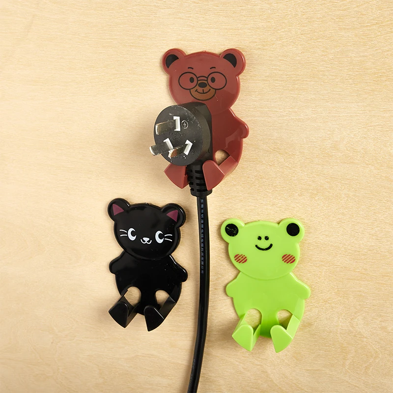 4 шт./лот клейкая вилка-крючок с мультяшными животными, домашняя розетка, вилка для хранения, линейная карта