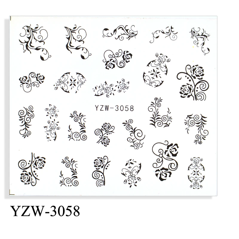 4 шт./лот черно-белые кружевные наклейки с цветами, наклейки на воду, цветочные листья, дерево, летние Слайдеры для маникюра, ногтей, водяные з...