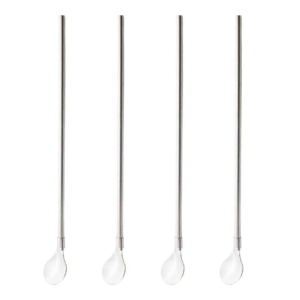 4 шт. многоразовая соломенная ложка с длинной ручкой, красочная соломенная ложка из нержавеющей стали 18/10, совок для чая, прямая барная ложка для перемешивания кофе, питьевая ложка 4pcs серебряный