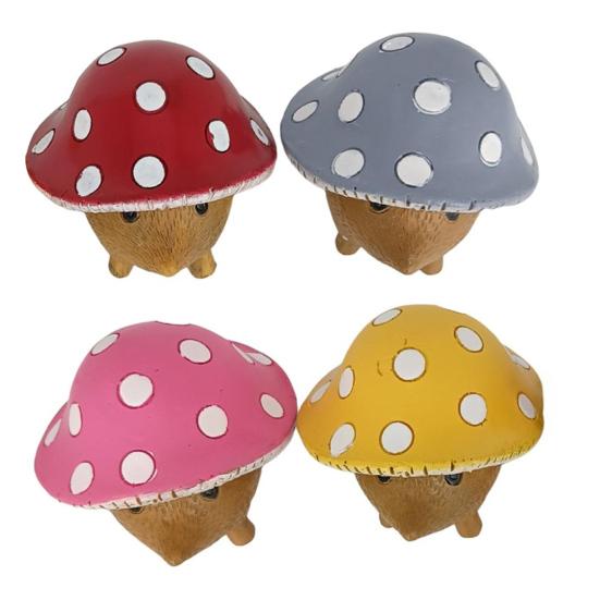4 шт./набор Садовая статуя ежа Смола Еж в грибной шляпке Погодоустойчивая фигурка ежа для сказочного сада Домашний патио Двор Украшение 1 Set