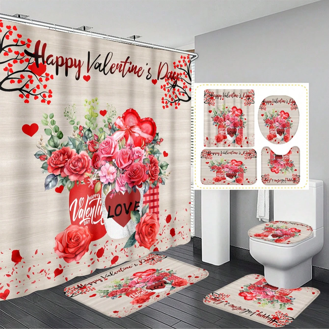 4 шт. набор для ванной комнаты на тему Дня святого Валентина, включая занавеску для душа, роза, воздушные шары, любовь, декор для ванной комнаты в фермерском доме