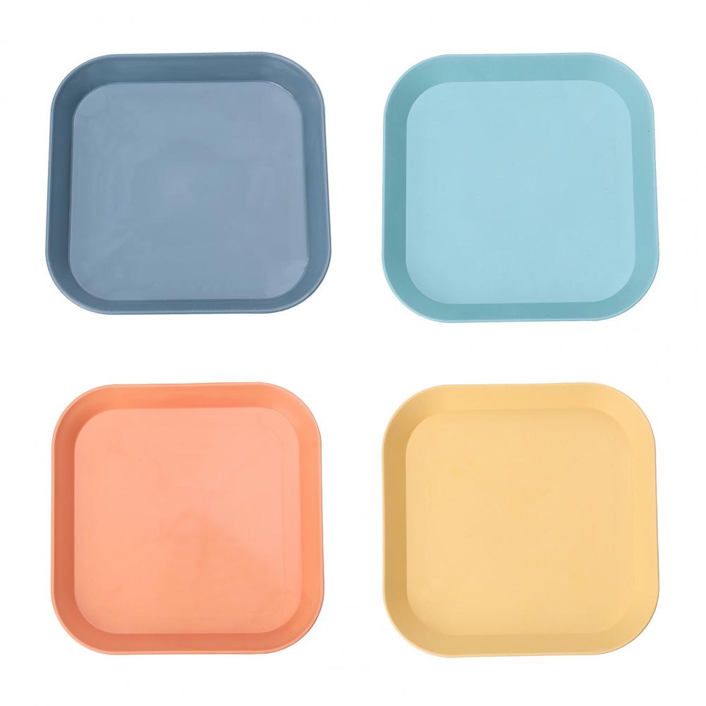 4 шт. небьющиеся тарелки, пригодные для посудомоечной машины в микроволновой печи, красочные повседневные квадратные круглые тарелки для кухни, кемпинга Round