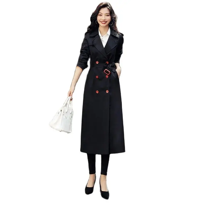 2023 New Highend Temperament Green Windbreaker Coat Women's Spring And Autumn Long Popular British Style Button Fashion CoatTide