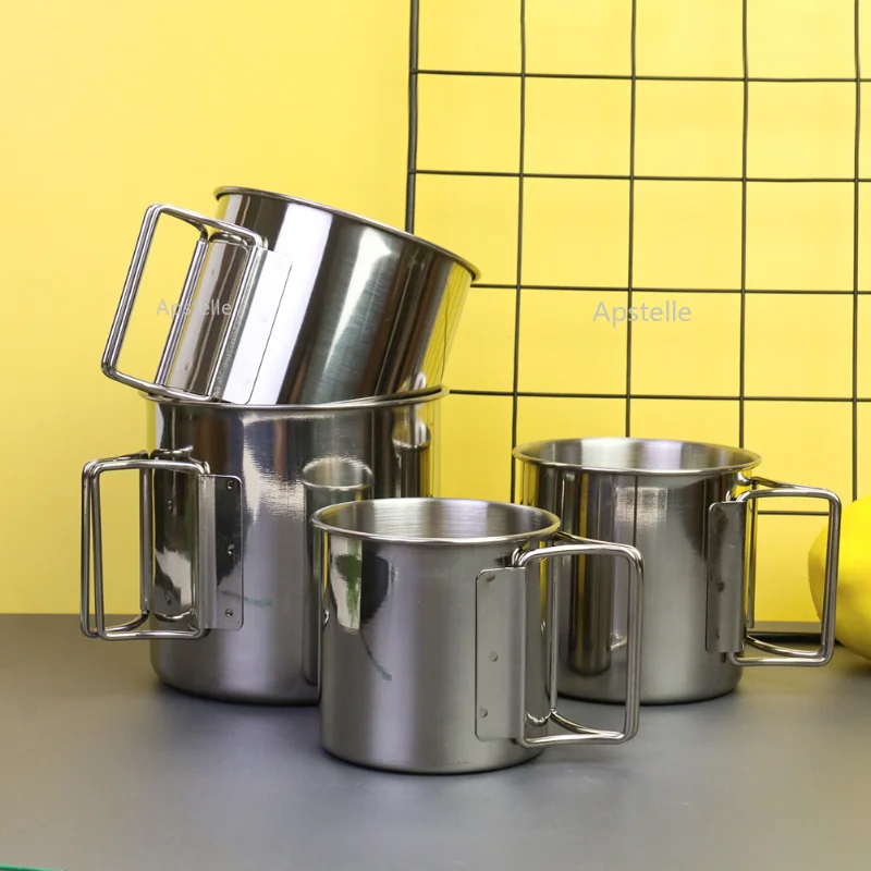 4 шт. складные ручки из нержавеющей стали, уличная посуда, штабелируемые кофейные чашки, набор посуды для кемпинга, питьевая вода, пивная чаш...