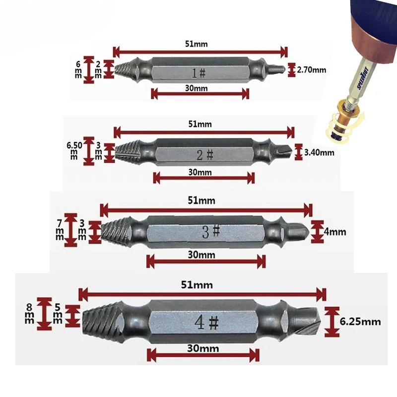 4 шт., стальная сломанная скорость, поврежденный экстрактор винтов, сверло, набор направляющих для рукоятки, съемник сломанного болта, легкий набор