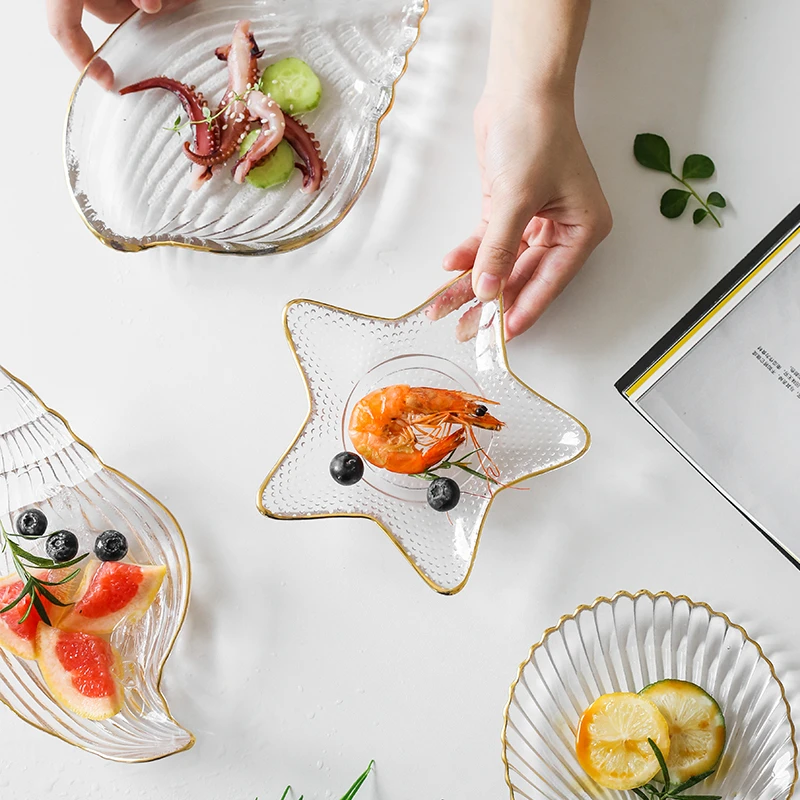 4 шт. утолщенная прозрачная стеклянная десертная тарелка из Пномпеня тарелка с раковиной миска Морская звезда тарелка для торта конфеты под...