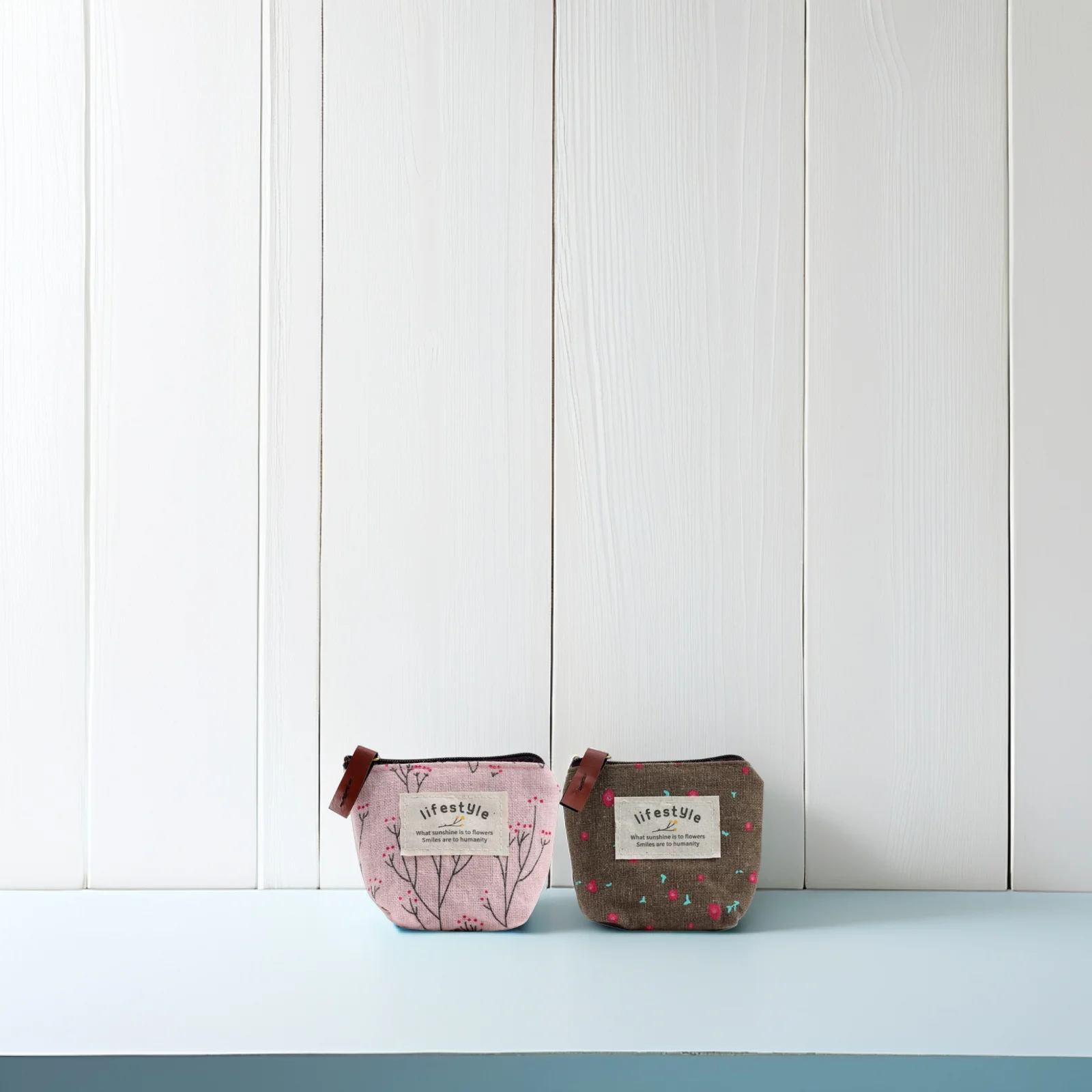 4 шт. холщовый кошелек для монет, легкая портативная сумка для хранения, держатель на молнии для наличных карт, ключей, мини-кошелек с мультяшным принтом