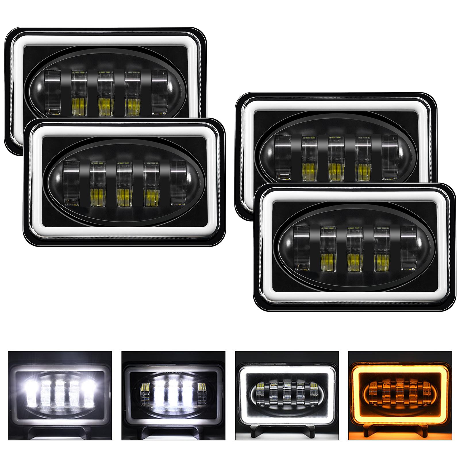 4 шт. 5-дюймовые автомобильные светодиодные фары, 4x6 прямоугольные фары с дальним/ближним светом, ДХО, указатель поворота, замена для Peterbilt