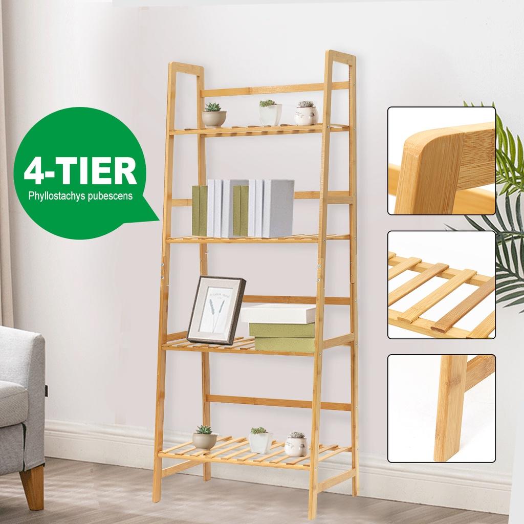 4-ярусная бамбуковая полка для хранения Трапециевидная полка для хранения Полки для ванной Подставка для растений Книжный шкаф Напольная лестничная полка Книжная полка