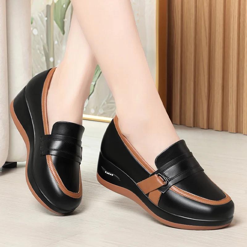 4,5 см Дышащие Удобные Разноцветные Лоферы из Мягкой Кожи Женские Туфли на Платформе 2025 Осень Средний Каблук Клинья Офис Мама 38
