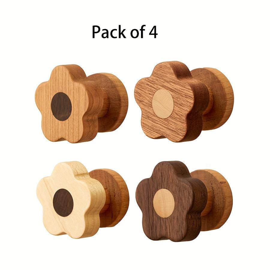 4/8 Наборов Крючков для одежды из массива дерева, 4 Стиля, Цветочные, Креативные, Высокого класса, Без сверления, Скандинавские, Высококачественные Крючки для одежды и шляп из массива дерева, Подходят для дома Floral coat hook set of 4