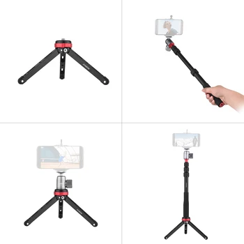 4-Section Extendable Selfie Stick with Mini Tabletop Tripod & Mini Ball Head for Canon Handheld Gimbal for GoPro Camera