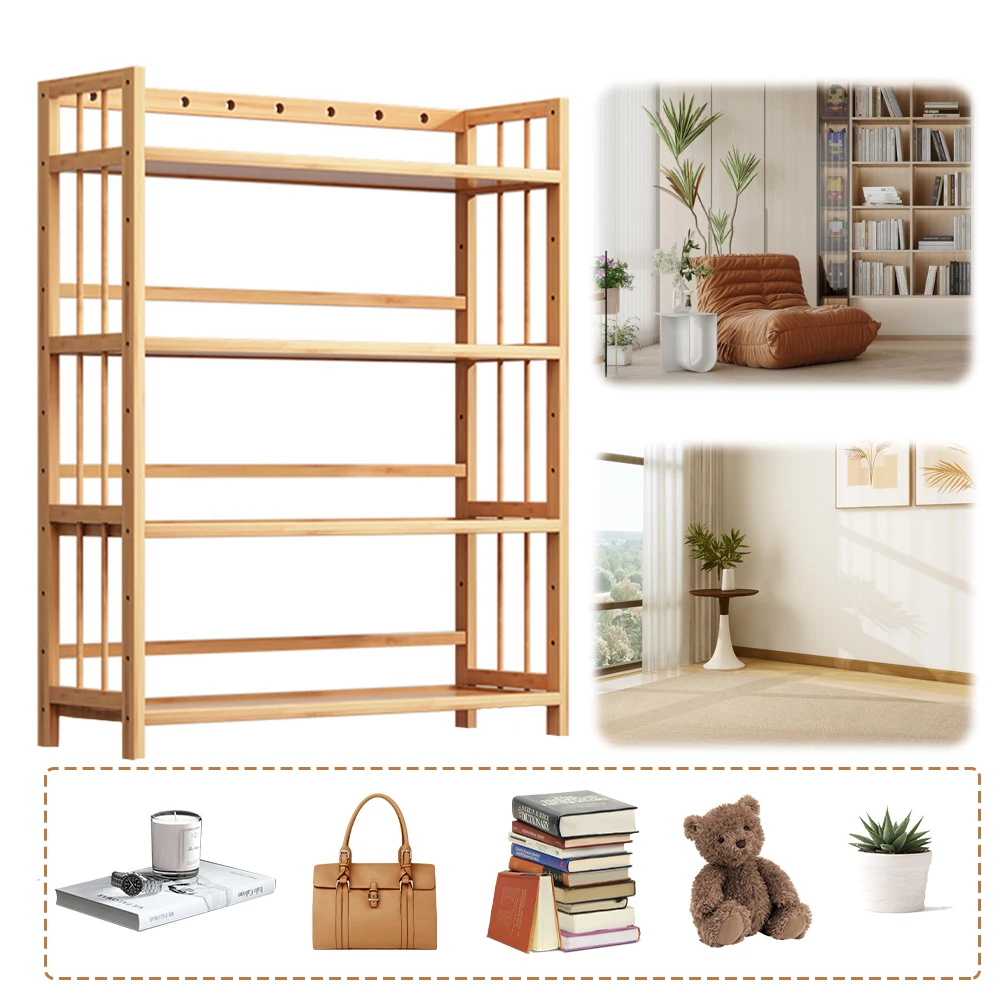4-Tier Simple Bookcase Multi-Function Free-Standing Storage Rack Storage Display Rack for Bathroom Kitchen Living Room