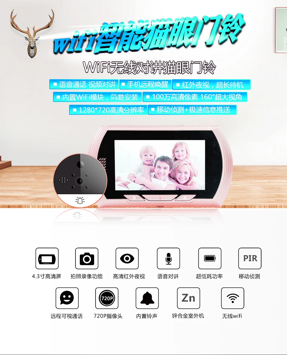 4.3 Inch Wireless WIFI Intercom Doorbell APP Remote Control Video Door Phone