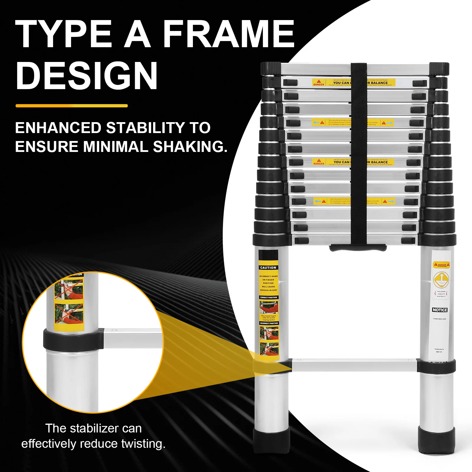 4.4m Thickened Single Ladder with 2 Triangle Stabilizers Warehouse Unloading Ladder Anti-Slip For Telecommunications Engineering