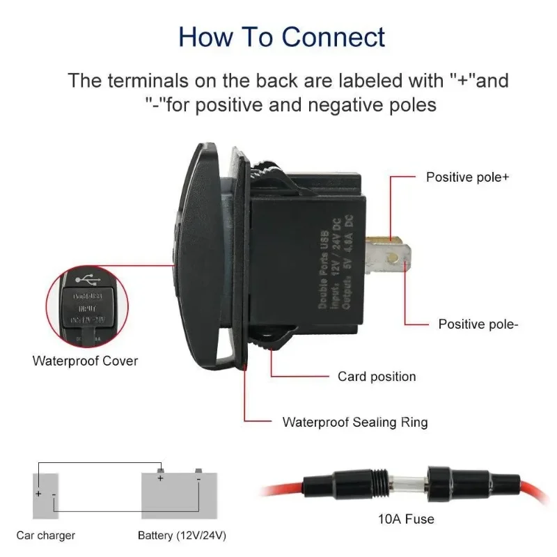 4.8A High-Current Mini Car Charger with Rocker Switch, Dual USB Port Fast Charging Adapter, Compact Design for Car/Truck/RV