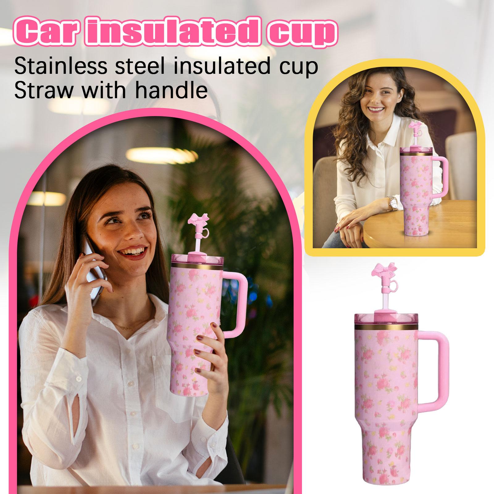 40 унций Изолированная кружка из нержавеющей стали 304 с ручкой и соломинкой, автомобильная изолированная кружка One Size