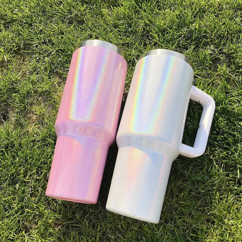 40 унций блестящая пустая сублимационная Мерцающая голографическая Радужная кружка Изолированная кружка с ручкой для горячей печати чашка из нержавеющей стали