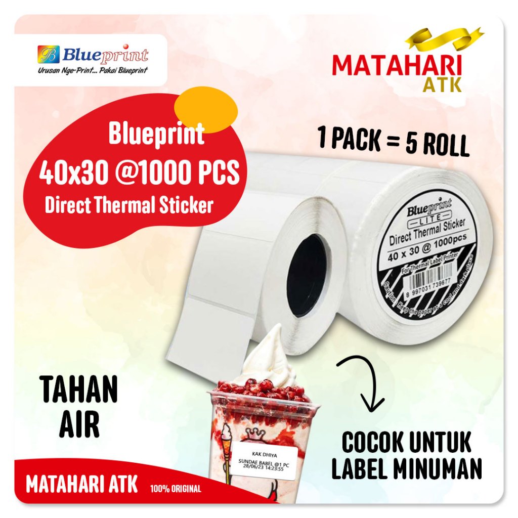 40x30 (1 PACK) Direct Thermal Sticker Label BLUEPRINT LITE 40x30 - untuk MIXUE