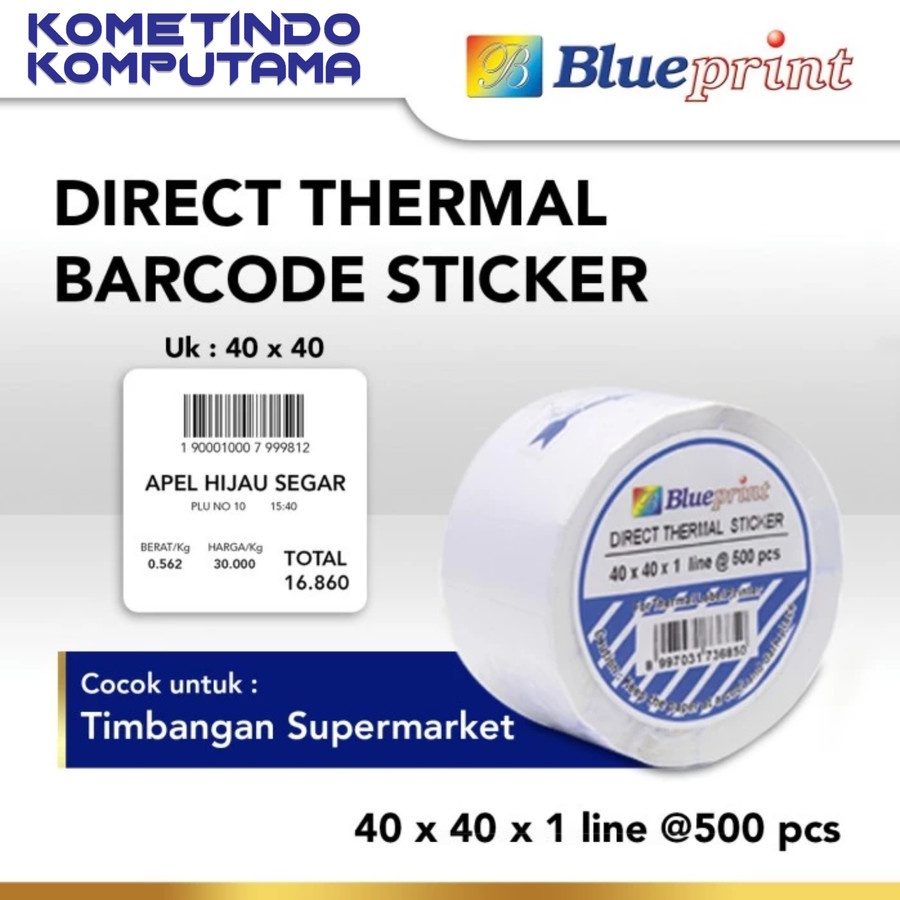 Stiker Barcode Label / Sticker Barcode Thermal BLUEPRINT Ukuran 40mm X 40mm