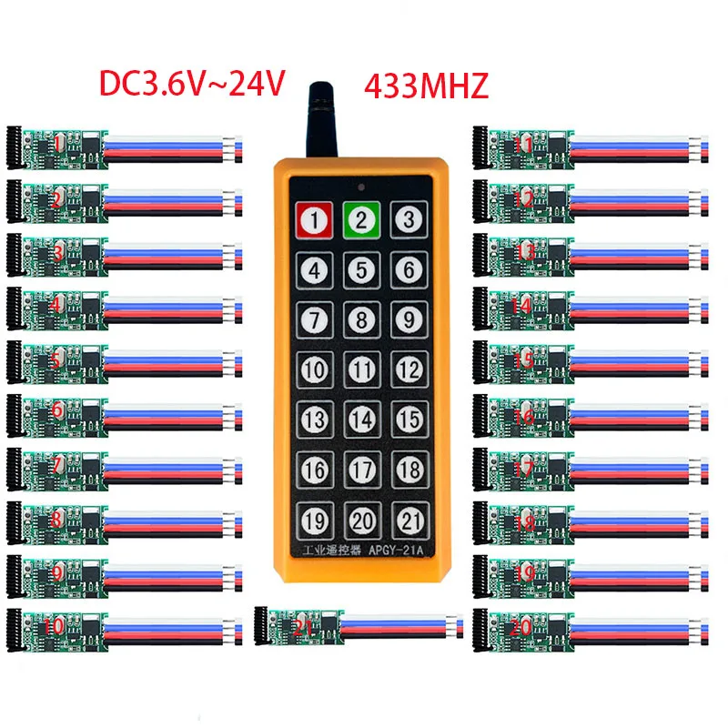 433MHz DC 3.6V-24V Universal Wireless Micro Remote Control Switch Long Range Mini Receiver Transmitter LED Light Controller