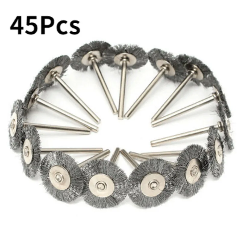 45 шт. проволочная щетка, металлическое шлифовальное колесо, стальной стержень, плоское медное проволочное колесо, Т-образная шлифовальная щетка для вращающихся инструментов Dremel