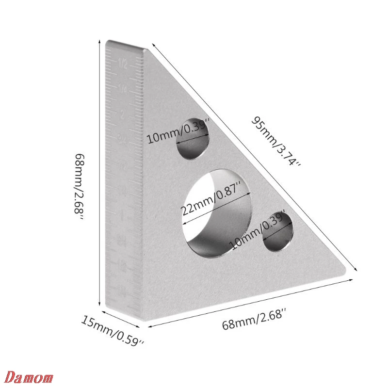 45 Degree Aluminum Alloy Angle Ruler inch metric Triangle ruler Carpenter's Workshop Woodworking square Multifunction Tool
