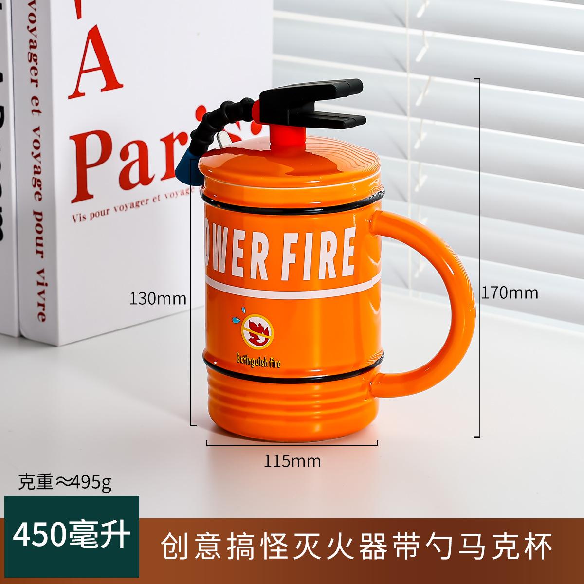 450 мл креативная кружка-огнетушитель с ложкой, чашка для чая в виде пожарного гидранта, кружка для воды в офисе, керамическая кружка, забавный подарок для лучшего друга 450ML оранжевый