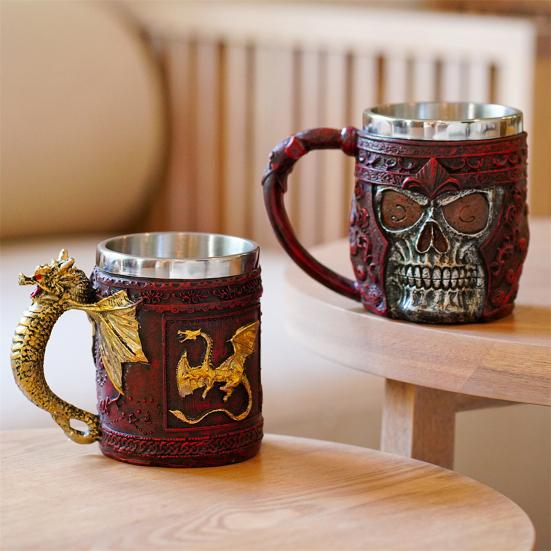 450 мл кружка для кофе из нержавеющей стали с внутренней стороны, большой емкости с ручкой, красный череп красный