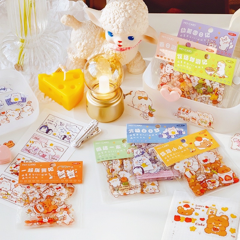 46pcs Sticker Aesthetic / Sticker Deco Journal Scrapbook Tumblr Bear Rabbit Lucu