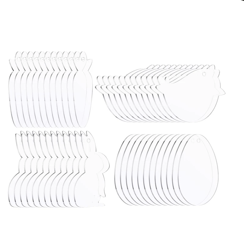 48 шт. акриловые заготовки для пасхальных украшений, подвесные украшения для деревьев, прозрачный кролик, Цыпленок, яйцо, морковь для творчес...