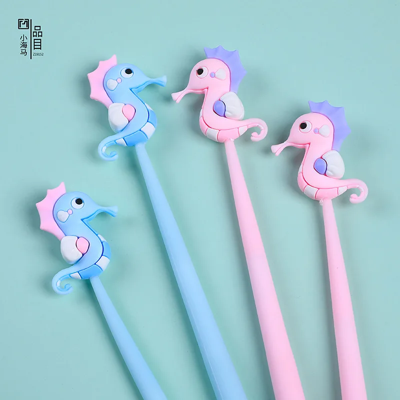 48 шт., креативная мультяшная маленькая морская конька, милая черная нейтральная ручка 0,5, сменный стержень, станция для учащихся начальной и средней школы