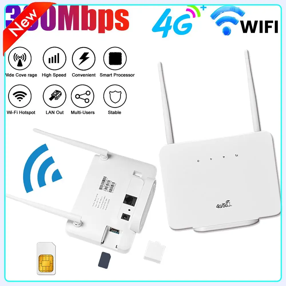 4G Wireless Router 300Mbps 4G Router Wireless Modem External Antenna with Sim Card Slot for Home Travel Work