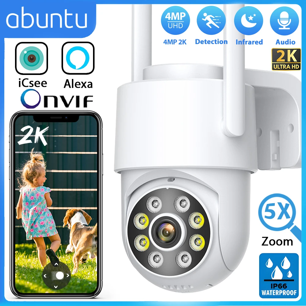 4MP 2K Wi-Fi IP-камера HD ICsee Уличная камера наблюдения IP66 Водонепроницаемая камера ночного видения Обнаружение человека Оповещение домашней безопасности CAM