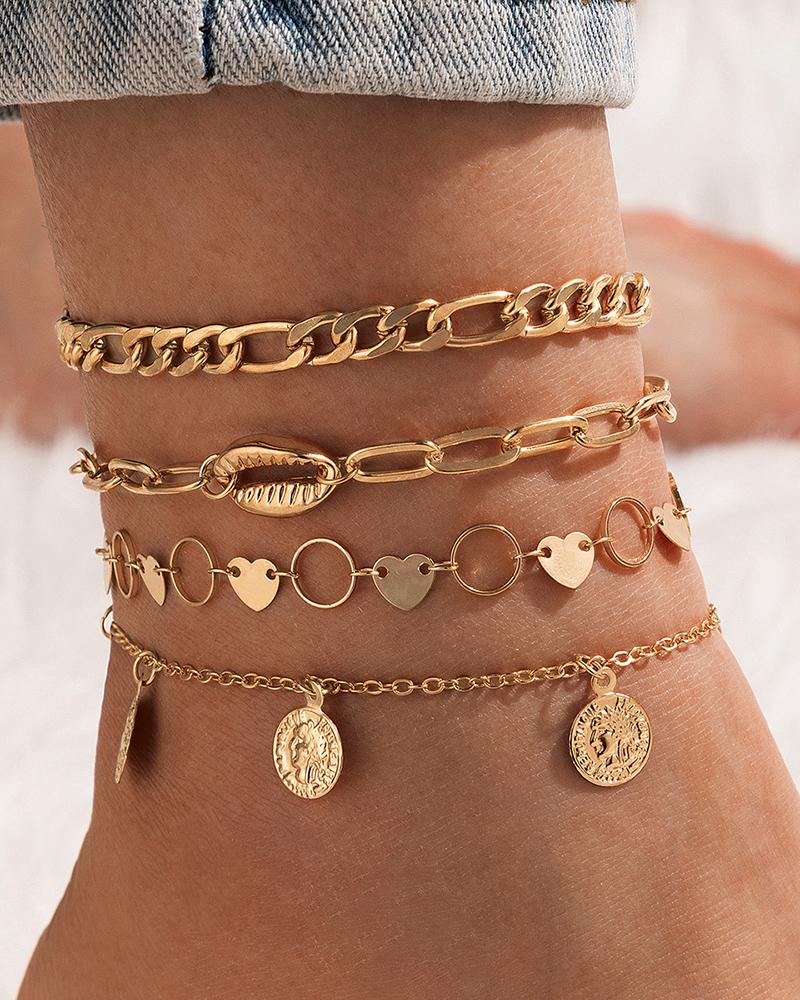 4PCS Heart Corn Pattern Chain Anklet, Gold