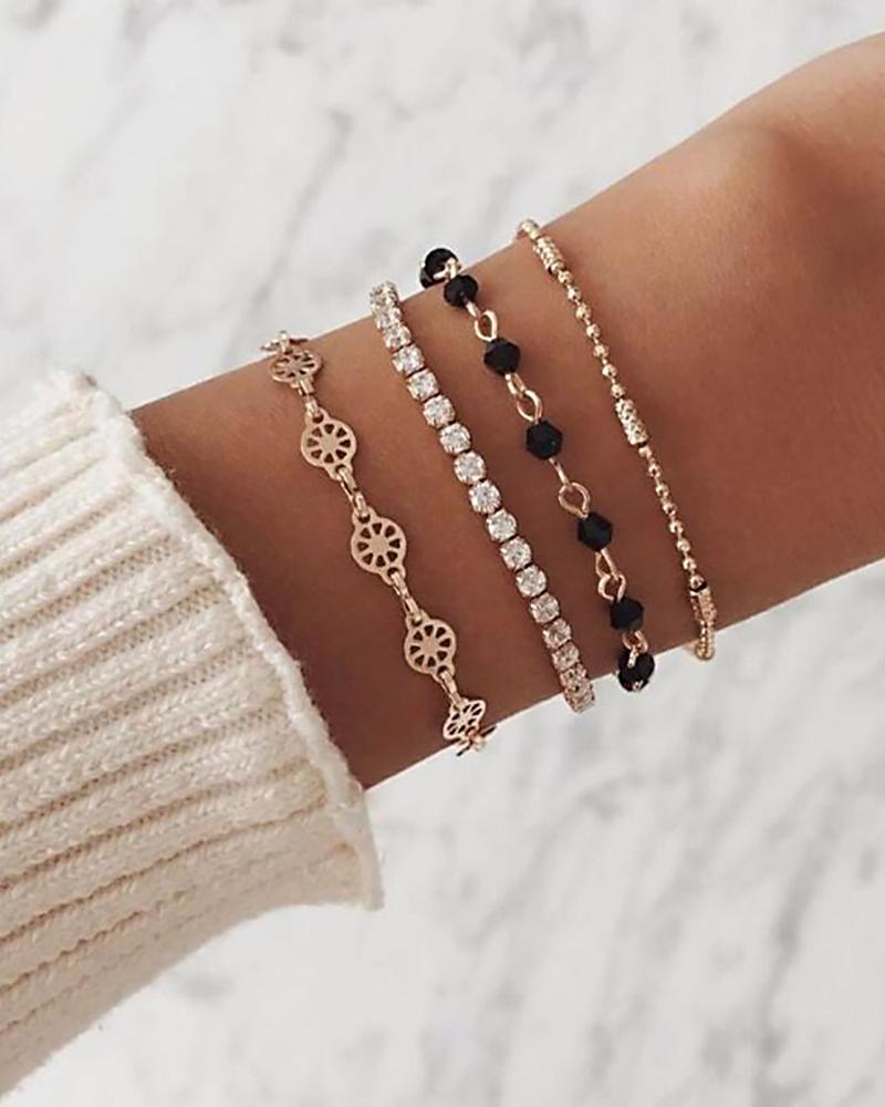 4PCS Rhinestone & Geo Pattern Bracelet Let, Gold