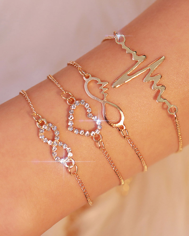 4PCS Rhinestone Heart Graphic Decor Bracelet, Gold