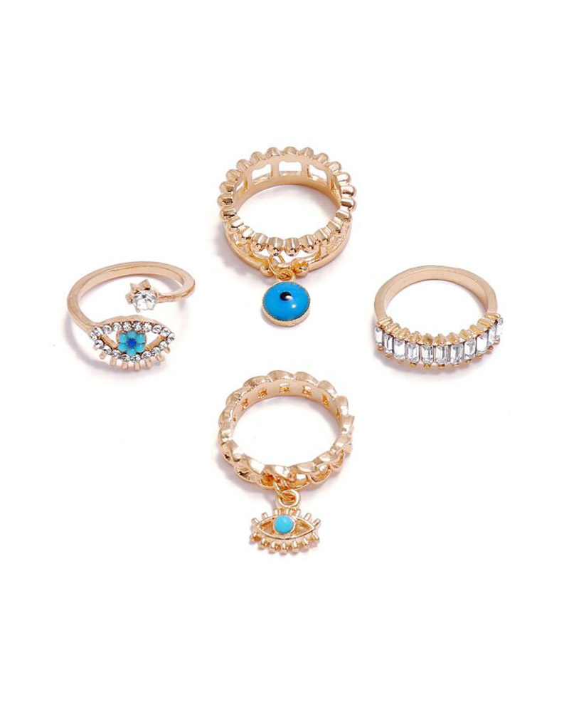 4PCS/Set Rhinestone Decor Devil Eye Pattern Punk Ring, Gold