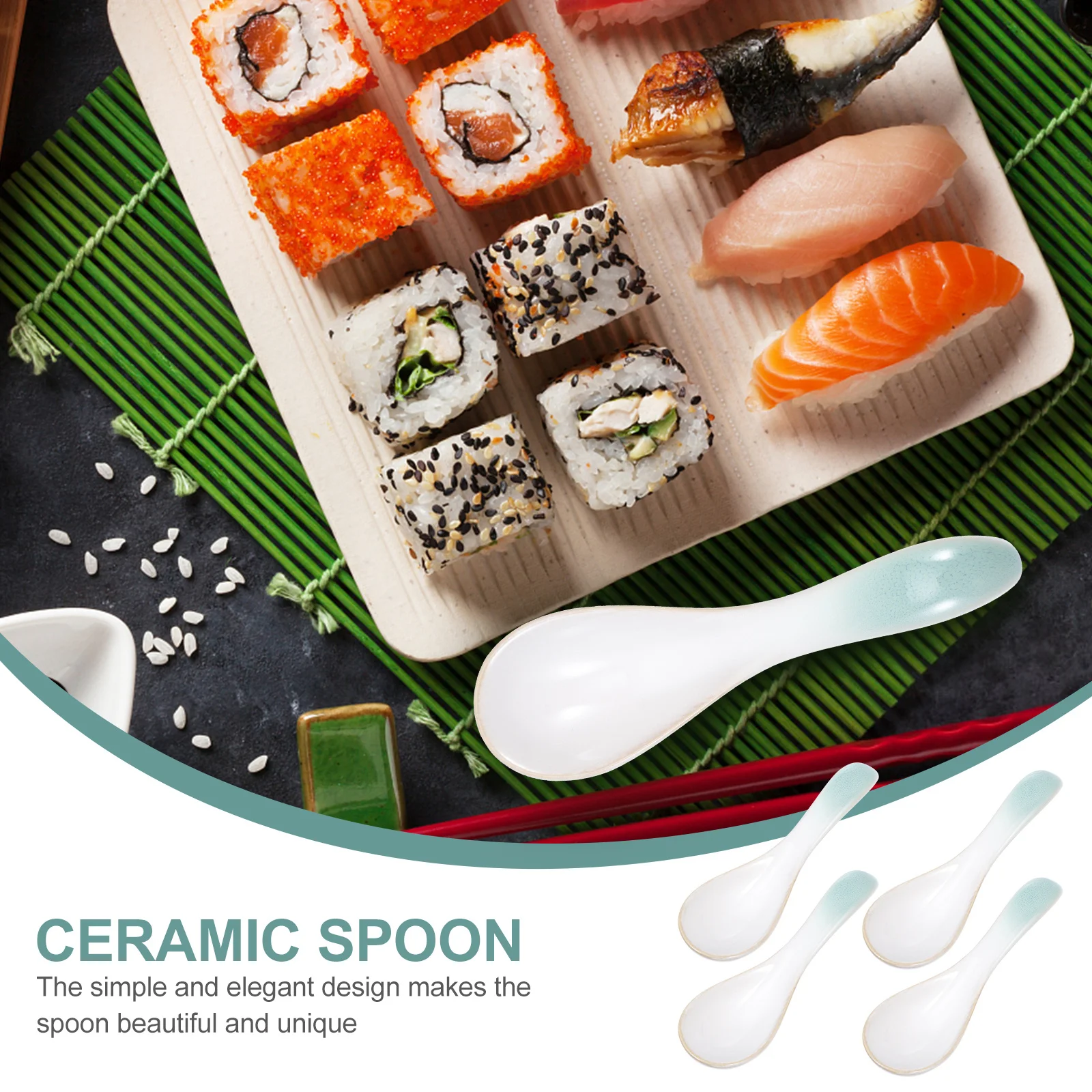 4Pcs Ceramic Spoons Retro Japanese Style Restaurant Soup Spoons Multipurpose Rice Porridge Kitchen Utensil Creative Tableware