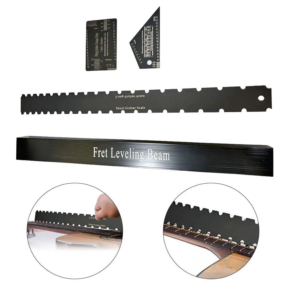 4Pcs Luthier Tools Guitar Neck Straight Edge Fret Leveling Beam Ruler Kit Set Stainless Steel Guitar Luthier Tools Black