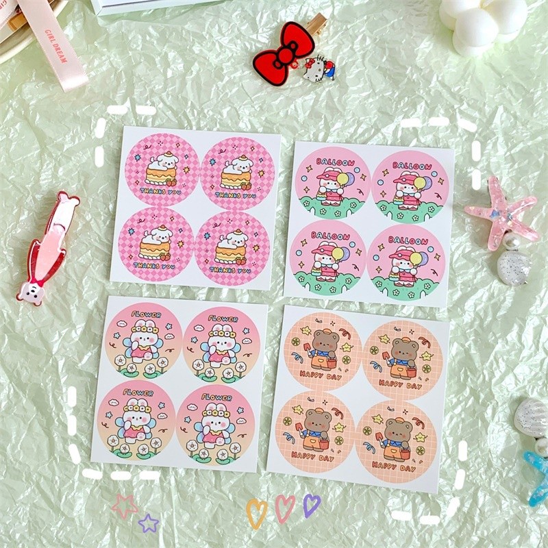 4pcs Rabbit Design Sealing Sticker Stiker Segel Bulat Lucu