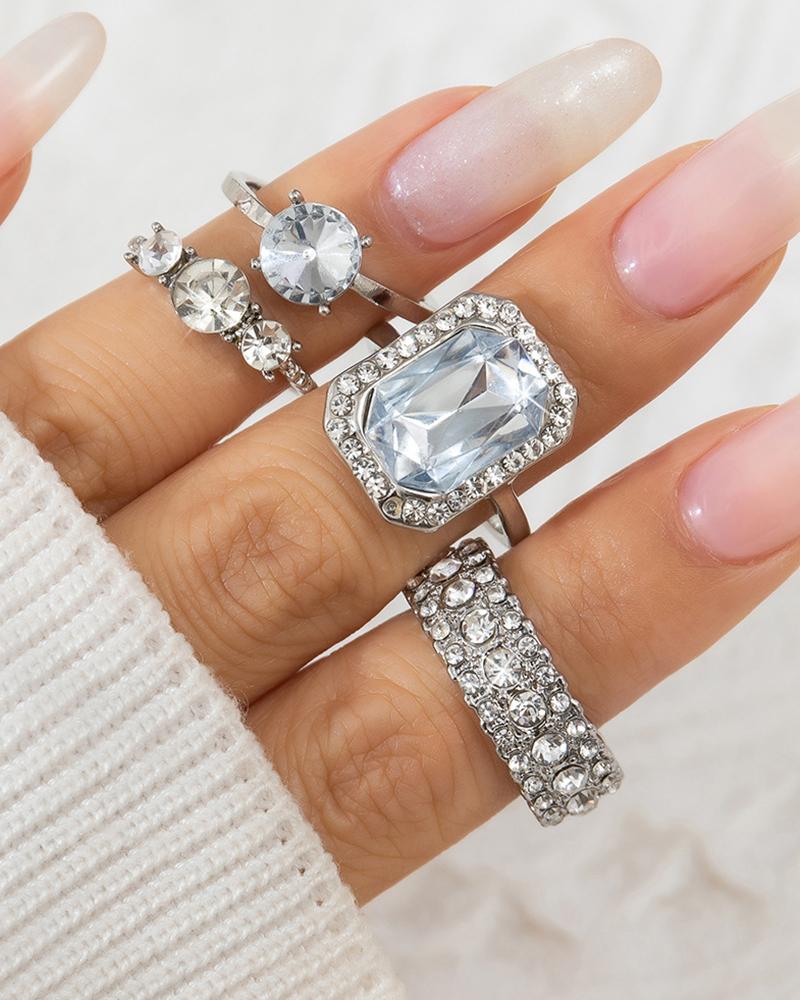 4pcs Rhinestone Gem Stone Stackable Rings Set, Silver