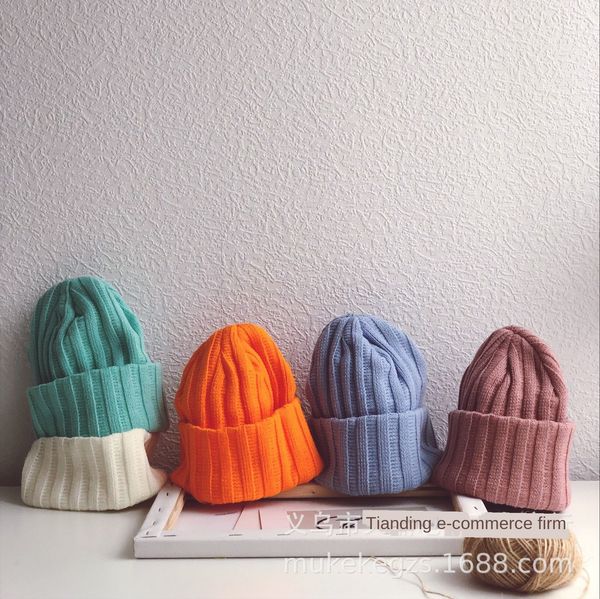 4w17r осень дыни и зима новый сплошной цвет вертикальная полоса детские вязаные дыня мех шляпа модных мальчиков и девочек все-матч керлинг ш, Yellow