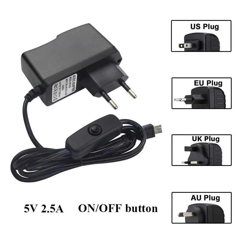 5 В, 2,5 А, Raspberry Pi 3, блок питания для ЕС, США, Великобритании, Австралии, зарядное устройство с кнопкой включения/выключения для телефона