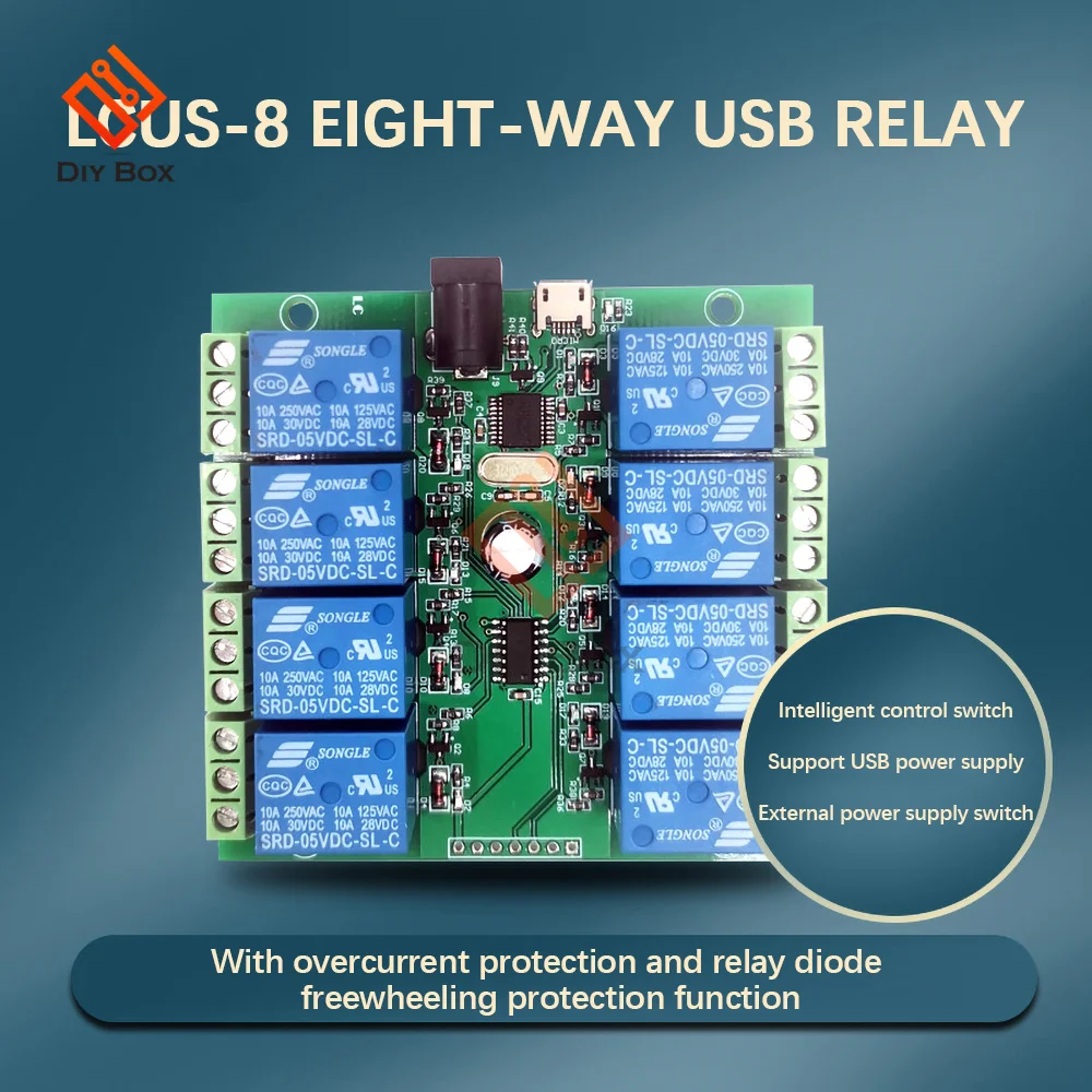 5 В, 8-канальный Φ Интеллектуальный переключатель управления CH340 от USB к релейному переключателю последовательного порта