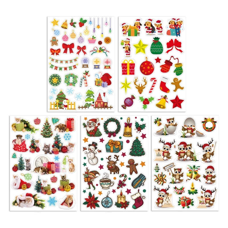 5 листов рождественских наклеек в ассортименте, милые Мультяшные Санта, олень, животные, Сова, праздничные Васи наклейки для рукоделия, альб...