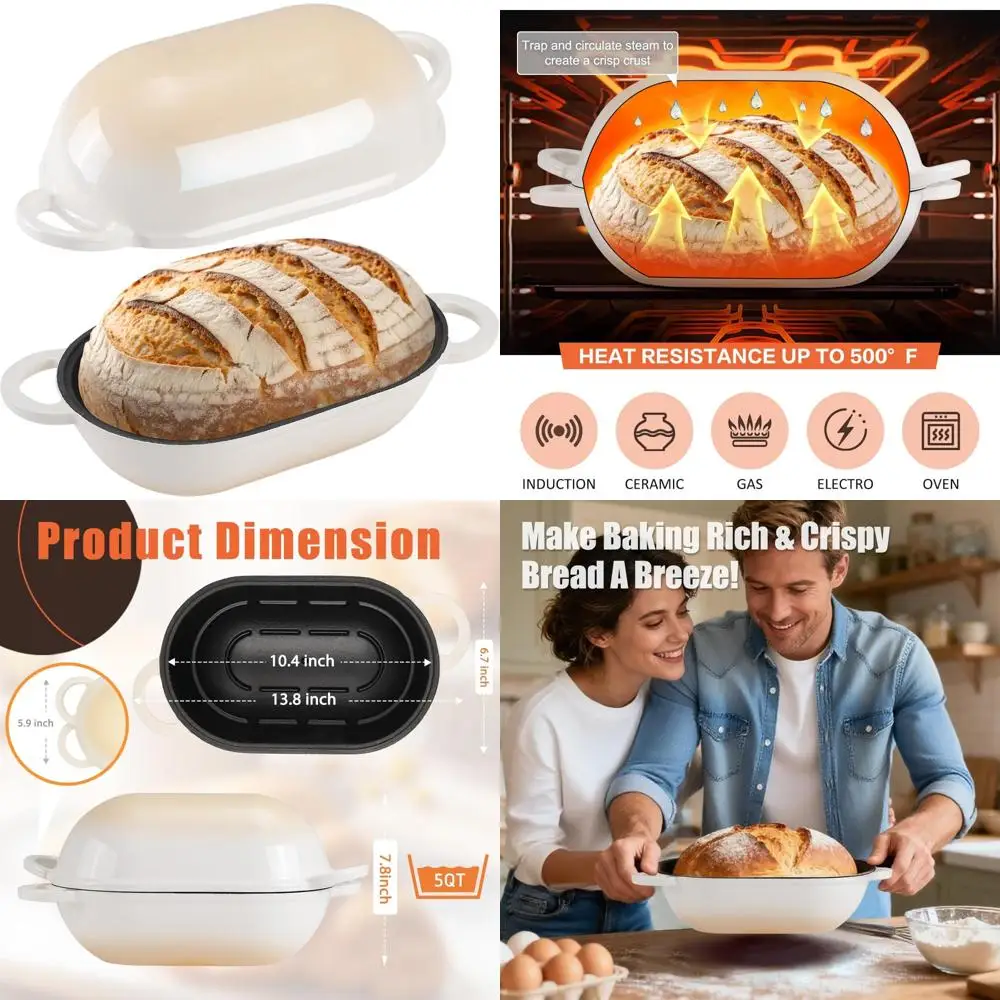 5-литровая чугунная форма для хлеба на закваске с крышкой, овальная голландская печь для домашней выпечки хлеба, идеально подходит для выпечки аутентичного тыквы