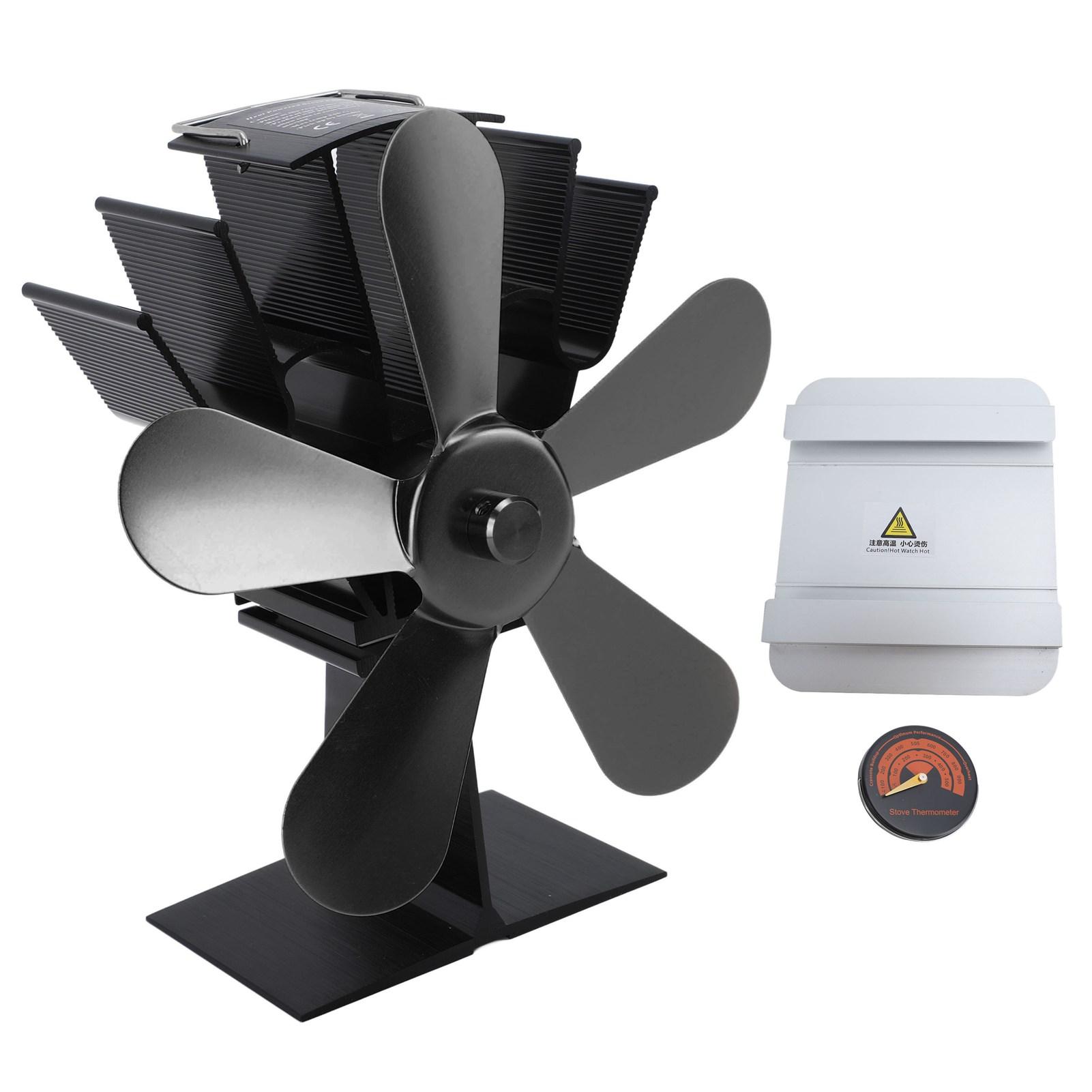 5-лопастной термоэлектрический вентилятор для дровяной печи, бесшумная работа, вентилятор для камина с теплоизоляционной пластиной чёрный