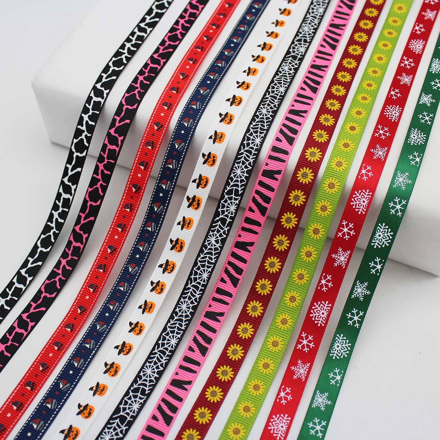 5 метров 3/8 "9 мм Большой печатная корсажная лента полиэстер ткань ленты Хэллоуин день моря для волос с бантом ремесла Сделай Сам аксессуары