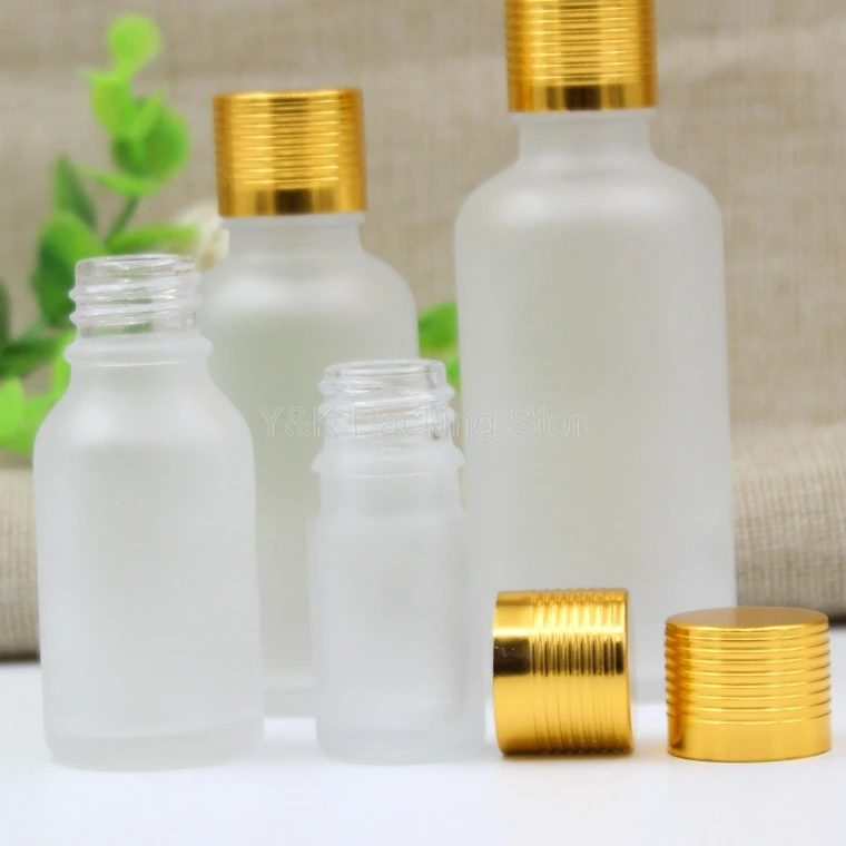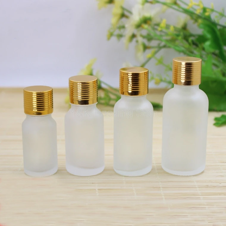 5 мл, 10 мл, 15 мл, 30 мл, 50 мл, 100 мл матовое прозрачное стекло бутылки эфирного масла, пустые стеклянные флаконы, яркая Золотая резьба алюминиевая...